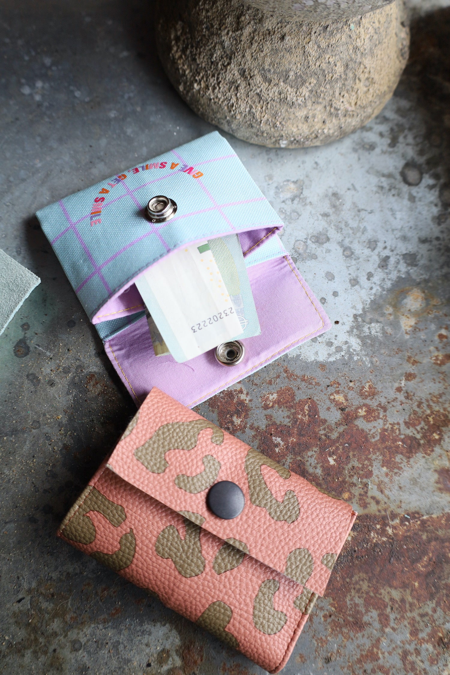 Praktische Mini Geldbörse aus beschichtetem Outdoorstoff und mit coolem Bügelbild.
